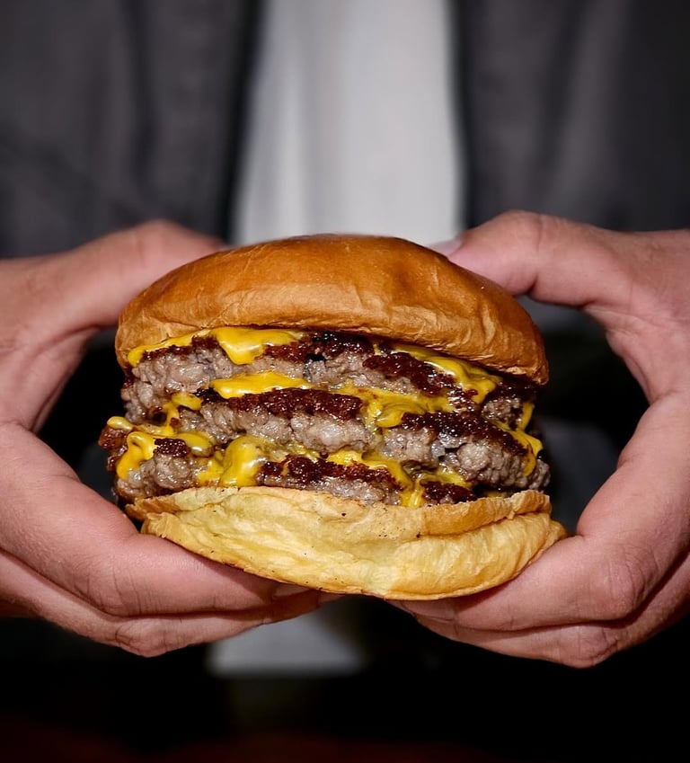 Doble carne de 120g, pan brioche y el cheddar más chorreante de San Justo.